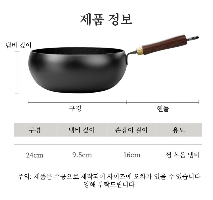 【철분 보충 순수 철】코팅 없는 논스틱 깊은 냄비